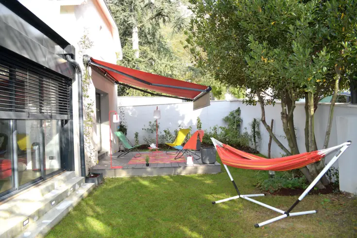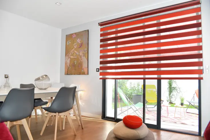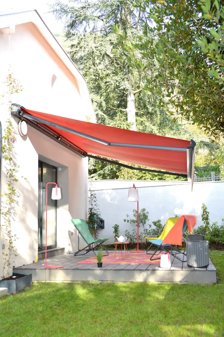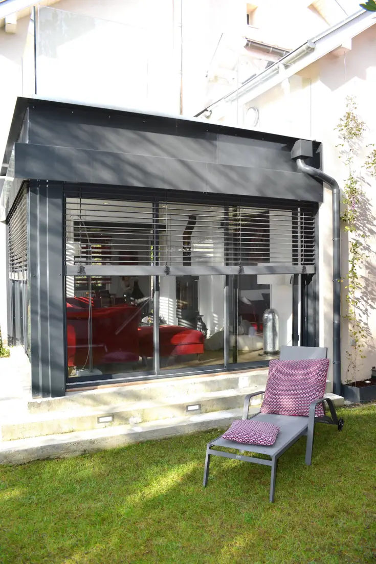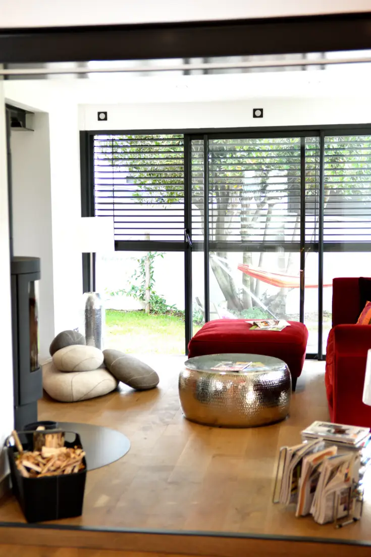Pour travailler sereinement, l’environnement compte pour beaucoup. Après le confort, il faut donc aussi travailler la déco de sa maison et de son extérieur, pour en faire un lieu de vie apaisant et un lieu de travail inspirant. ici, avec les stores intérieurs et le store banne, en passant par les assises des chaises, les rouges et les orangés s’invitent comme des touches de peps qui viennent réveiller le blanc des murs et les menuiseries anthracite. un joli équilibre qui mise sur une harmonie parfaite !
