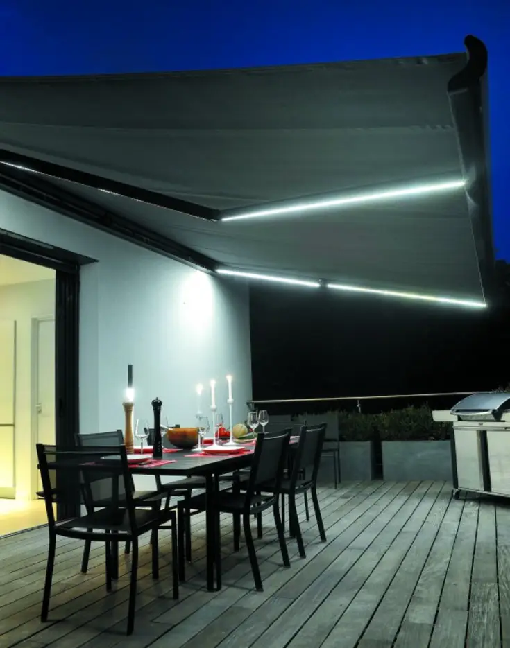 Ce store invite à prolonger ses soirées d’été jusqu’au bout de la nuit. Son éclairage LED intégré aux bras apporte un éclairage parfait pour vos dîners entre amis.