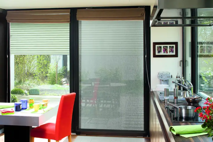 À l’intérieur, on mise sur des stores vénitiens, enrouleurs, californiens ou plissés : ils protègent tout en laissant passer la lumière lorsque cela est nécessaire. Particulièrement adaptés à des ouvertures hors-norme, comme des verrières ou des vérandas, ils sont indispensables pour éviter « l’effet four » que subissent souvent ces pièces, dès le printemps. On pense aussi à détourner les moustiquaires, qui se déclinent aujourd’hui en un vaste choix de coloris très tendance, pour les utiliser comme stores sur les fenêtres et les baies vitrées. Elles ont l’avantage de tamiser la lumière sans opacifier la vue, et permettent une aération naturelle.