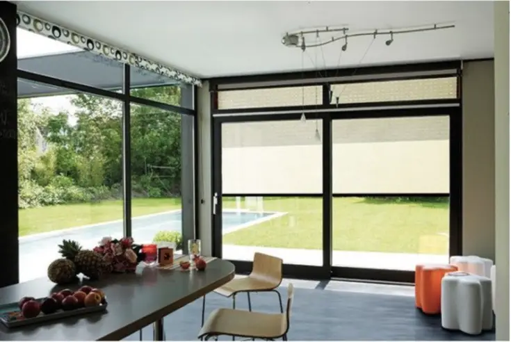 Dans les pièces de vie ouvertes sur l’extérieur avec des baies vitrées et bien exposées, installer un volet roulant alu avec store intégré est une excellente idée : il améliorera le confort et l’esthétique de la baie.