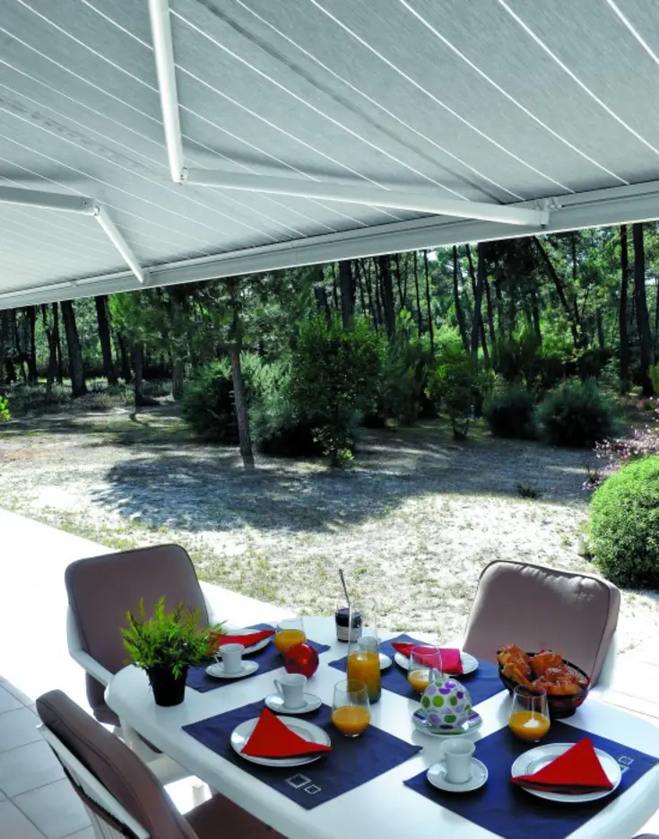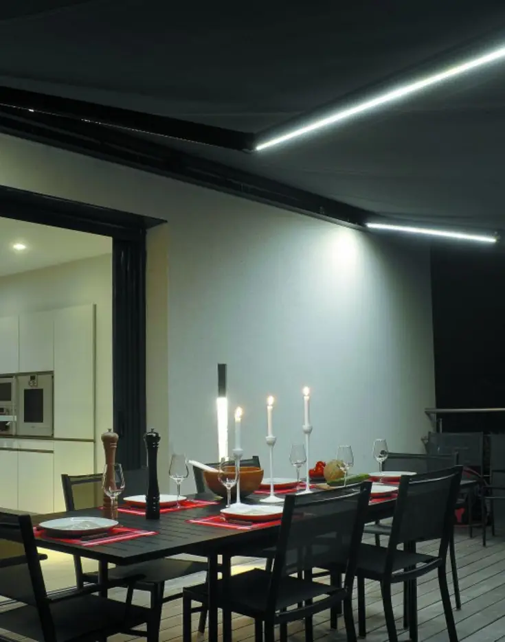 Objet de toutes les attentions pour la transformer en cinquième pièce de la maison, on aime naturellement y prolonger ses soirées le plus longtemps possible et y varier les activités. À l’automne les nuits se raccourcissent, alors pour profiter plus longuement de votre terrasse, optez pour un store avec un éclairage led et agrémentez-le d’un variateur d’intensité.