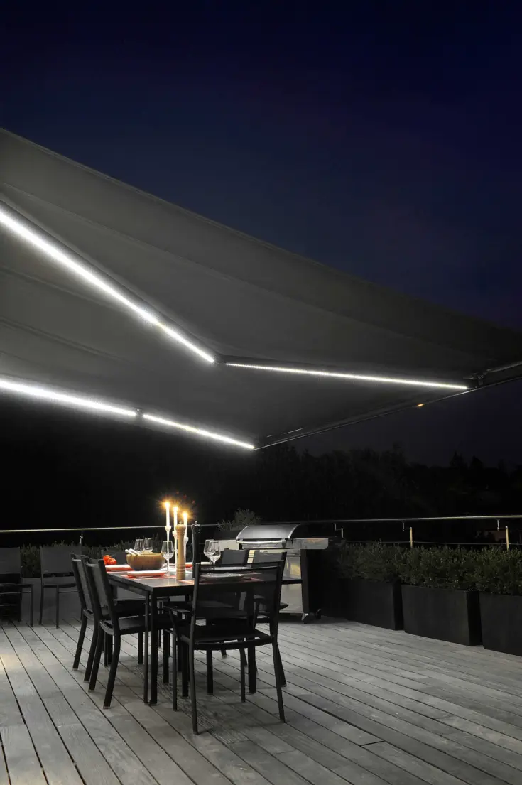 Un store banne à LED intégrées offrira par exemple à la salle à manger d’extérieur un réel confort tout en apportant du style à la terrasse, avec un éclairage à la façon des tubes de néon. La déco de jardin mise aussi sur les LED, et on mixe la lumière blanche – qui permet un meilleur éclairage – aux LED colorées, qui apportent l’esprit art urbain que l’on cherche avec les néons.