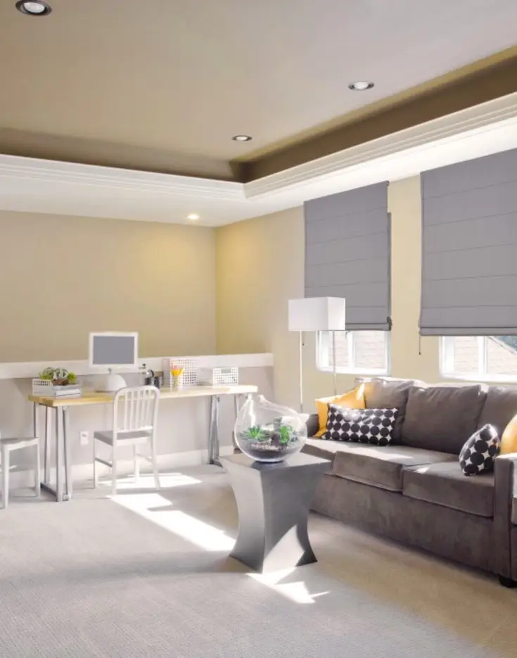 Du naturel, encore et toujours : c’est le maître mot pour choisir les matériaux de vos meubles et de vos stores. Le bois est très présent : sur les pieds du canapé, des tables basses, des chaises… Et pour les lames de vos stores.