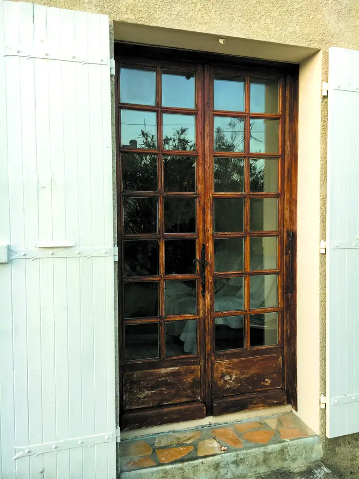 Ici, la porte-fenêtre en bois marron, vieillissante, a été remplacée par un modèle PVC blanc. Cette nouvelle menuiserie apporte beaucoup de lumière tout en conservant les codes de l’ancien, grâce aux petits-bois et au soubassement