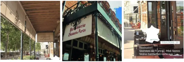 Notre brasserie, à l’intérieur, comme à l’extérieur est d’un style plutôt baroque, dans l’esprit des immeubles typiques du centre ville Toulousain. Nous avons opté pour des stores verticaux aux couleurs sobres et élégantes qui épousent parfaitement l’environnement architectural. Une véritable réussite.