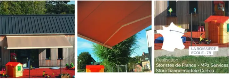 Notre micro-crèche rurale répond à la norme BBC (bâtiment basse consommation). Dans cette logique écologique et pour assurer le confort et l’épanouissement des tout-petits, nous avons fait installer un store qui crée une zone d’ombre et les protègent du soleil à l’extérieur mais aussi à l’intérieur où il fait plus frais l’été. Merci Storistes de France !
