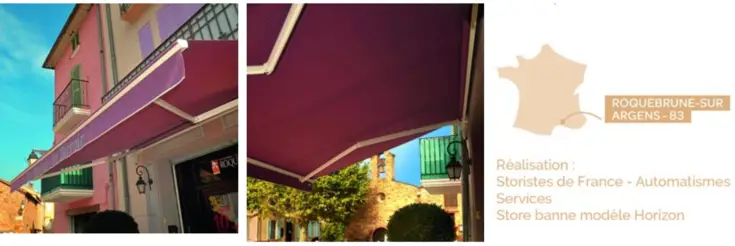 Dans notre boutique, nous vendons des produits de qualité issus des exploitations agricoles de Roquebrune. Pour les protéger de la chaleur, j’ai fait installer un store que j’ai pu personnaliser et harmoniser à mon environnement et marquer au nom de l’entreprise dans un esprit artisanal. Depuis, j’ai gagné en visibilité et en fréquentation !