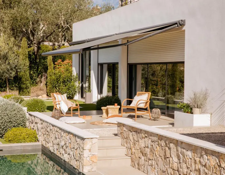 On opte ainsi pour un store banne installé au-dessus de la terrasse : il apportera intimité