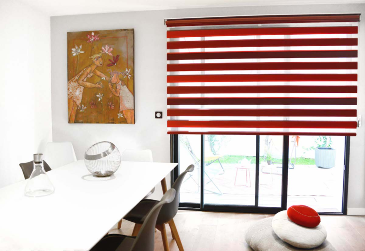 Très efficaces pour protéger des éblouissements sur un écran d’ordinateur comme pour tamiser la lumière, les stores night & day sont ici déclinés dans des tonalités orangées. Ils apportent en plus un esprit déco chaleureux à la pièce de travail, loin de l’aspect froid et industriel des stores de bureaux. Une esthétique qui a son importance pour travailler dans une ambiance cosy stimulante.