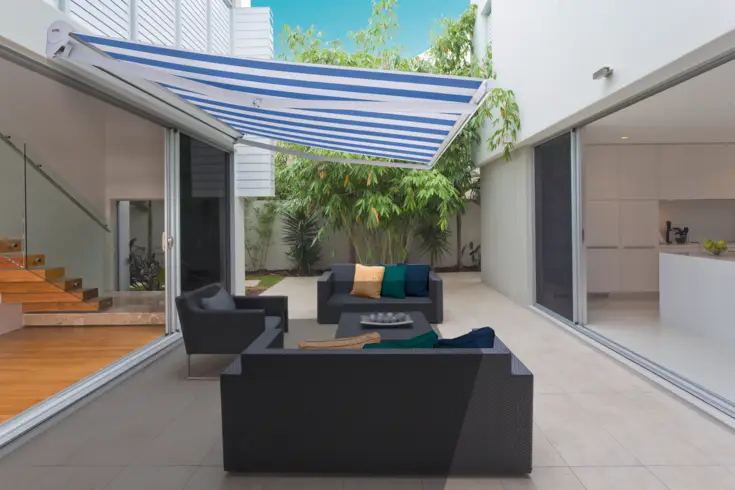 Lors de l’installation d’un store banne, on peut opter pour un store de même largeur que la porte-fenêtre ou de la baie vitrée, ou alors l’installer sur toute la largeur du mur pour profiter d’un grand espace ombragé.