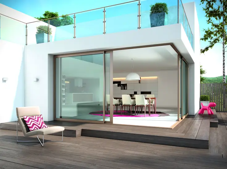Le coulissant en aluminium laisse entrer un maximum de lumière et la chaleur naturelle dans votre intérieur. (...)