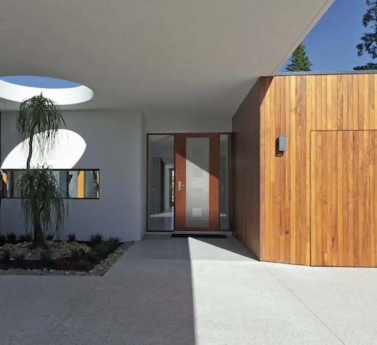 La porte alu monobloc Brun s’intégrera parfaitement dans une architecture très contemporaine, avec ses lignes épurées et sa forte singularité. Un design robuste et minimaliste à la fois, idéal pour sécuriser et isoler une maison moderne.