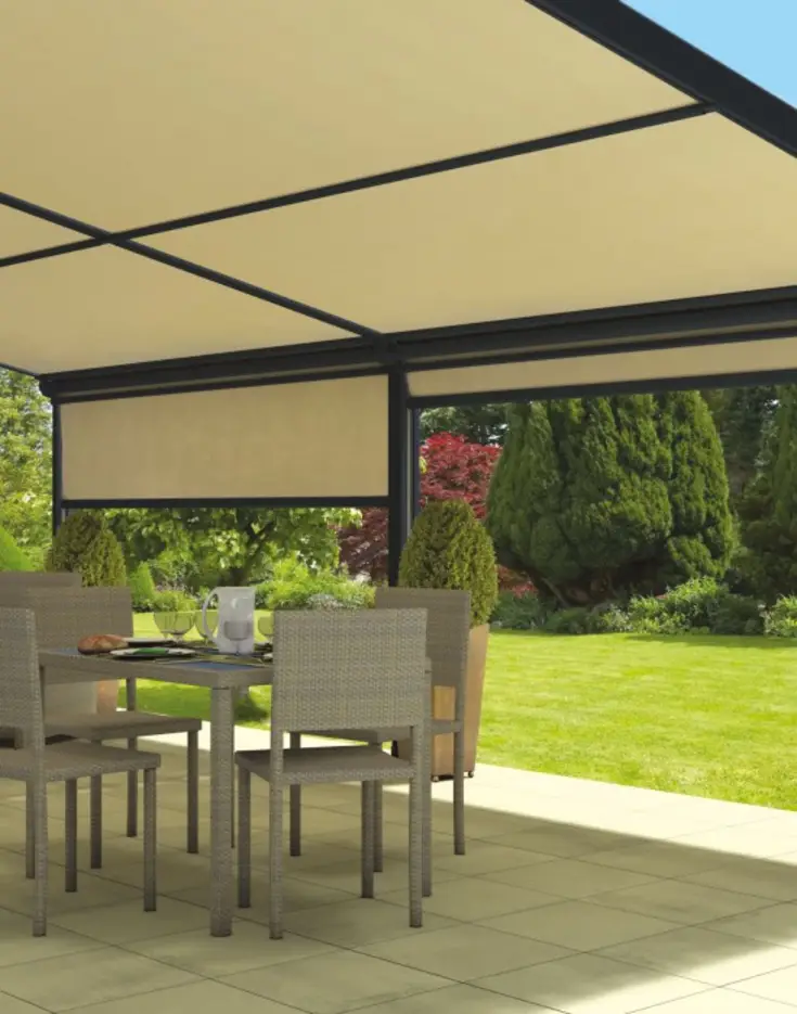 La terrasse nomade, c’est celle qui s’improvise au bord d’un lac ou dans un coin de jardin. Pour protéger et styliser l’endroit que vous avez choisi, il faut plus qu’un simple store d’extérieur. Le store double pente Plaza 2 est une véritable structure de jardin : vous bénéficierez d’une vue à 360° sans subir les aléas de la météo.