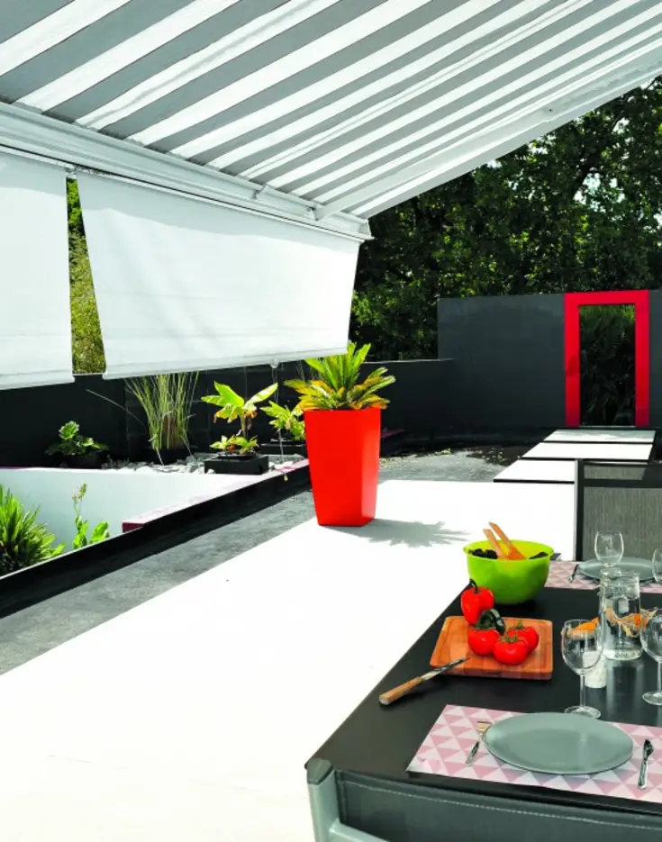 Storistes de France propose des stores sur-mesure, aussi vous pourrez l’assortir avec le mobilier de votre terrasse. Et pour un look moderne, pourquoi ne pas choisir une armature à l’aspect métallisé et une toile Sattler qui capte la lumière et évolue en fonction des saisons et de la luminosité ? Vous donnerez à vos apéritifs un air futuriste.
