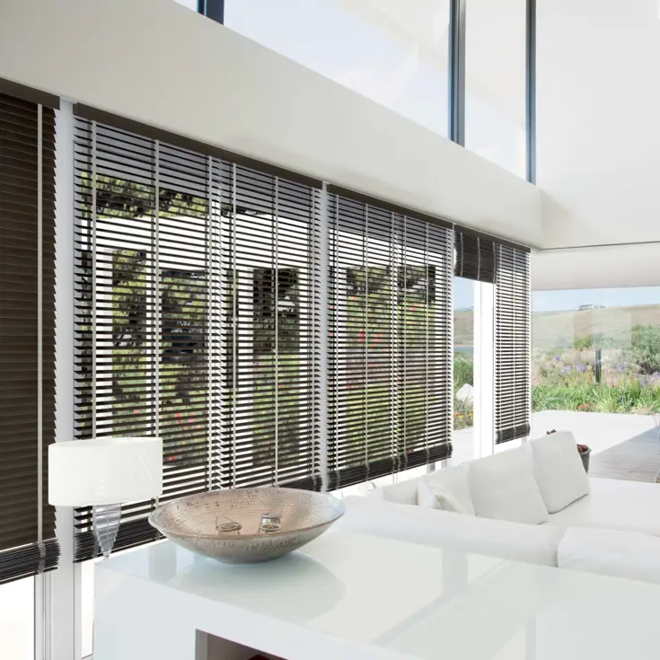Dans une maison contemporaine, on peut par exemple installer un coin lecture sous une grande fenêtre et l’équiper de stores vénitiens en bois véritable pour créer un environnement beaucoup plus chaleureux grâce à ce matériau.