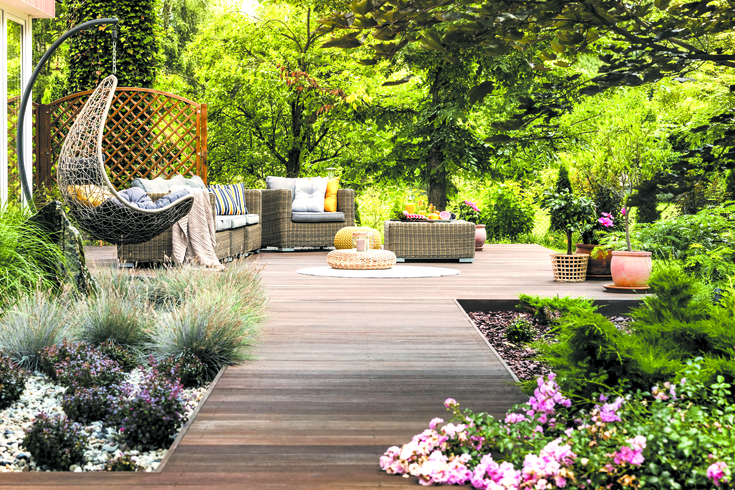 Côté mobilier, c’est le bois dans une version plus nature que jamais qui inonde nos extérieurs. La résine tressée n’a plus la cote, et on opte aujourd’hui volontiers pour du mobilier en bois, de préférence brut et marqué par les traces du temps, pourquoi pas récupéré. Les objets déco se conjuguent alors à l’imparfait : l’esprit wabi sabi débarque sur la terrasse, comme un hommage à l’imperfection et à la puissance de la texture. Un tabouret en teck comme un tronc d’arbre, un banc rustique dépoussiéré et des fauteuils bas, en cannage, aux lignes des années 1950 et 1960 s’invitent dehors pour créer un confortable salon de conversation. En plus d’être tendance, c’est une déco idéale pour réchauffer une architecture très contemporaine.