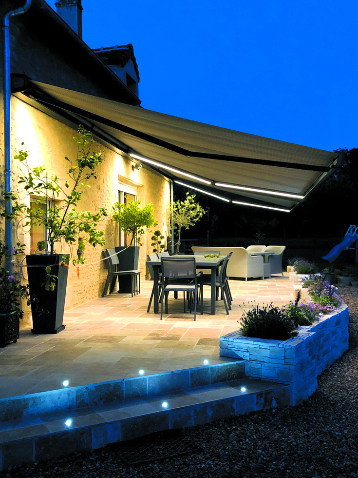 Pour finir, on n’oublie pas de faire une place de choix à la lumière, souvent négligée à l’extérieur. Cette année, l’éclairage se réinvente pour devenir aussi pratique que cosy et créer une ambiance chaleureuse à la nuit tombée. On privilégie donc de vrais luminaires équipés de variateurs, car ils permettront de tamiser l’atmosphère à l’envi tout en bénéficiant d’un bon éclairage. Les stores bannes Storistes de France offrent d’ailleurs la possibilité d’intégrer des LED, une excellente solution pour qui veut optimiser son installation. Et pour l’aspect nomade, on mise sur une baladeuse design qui joue la carte de la modernité.