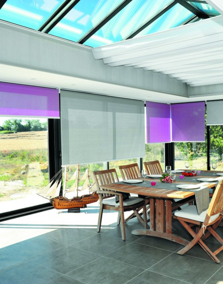 Le store vénitien Vélum : Inspiré du store vénitien, ses lames orientables s’ajustent en fonction de l’ensoleillement souhaité. En bois ou en aluminium, avec plus de 120 coloris, il est particulièrement adapté aux vérandas et verrières de grandes hauteurs et se manoeuvre via une manivelle et/ou une télécommande pour plus de simplicité.