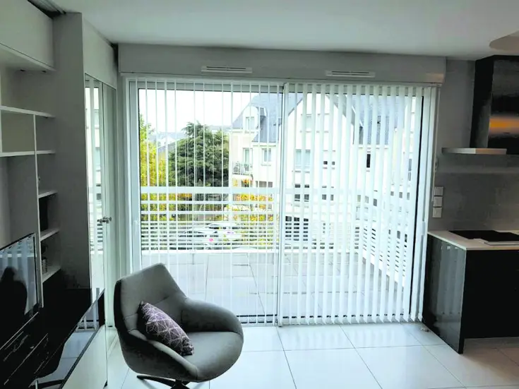 Le store californien a ici transformé la pièce : préservée du vis-à-vis, mais pas de la lumière, elle est devenue beaucoup plus intime. Un vrai plus lorsque l’on vit en résidence.