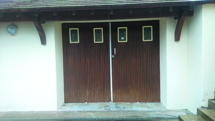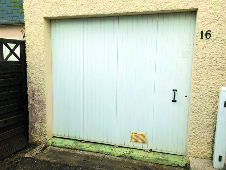 Ce garage est désormais parfaitement net et isolé, tout en gardant un style classique avec un motif de bois foncé. Son système motorisé à ouverture plafond assure un fonctionnement fluide et durable.