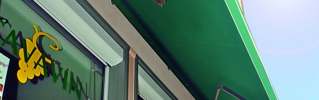 Suite à la reprise du fonds de commerce, j’ai voulu renouveler la toile du store et le système qui étaient en place. L’objectif était d’afficher le changement de propriétaire, mettre en avant le nouveau nom et choisir des couleurs en adéquation avec l’identité visuelle, tout en protégeant de la chaleur et de la lumière naturelle, mes bouteilles de vins et ainsi conserver pleinement leur bouquet et leurs arômes.